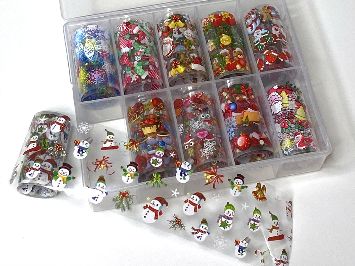 A collection of Christmas themed nail foil ribbons. Set of 10.